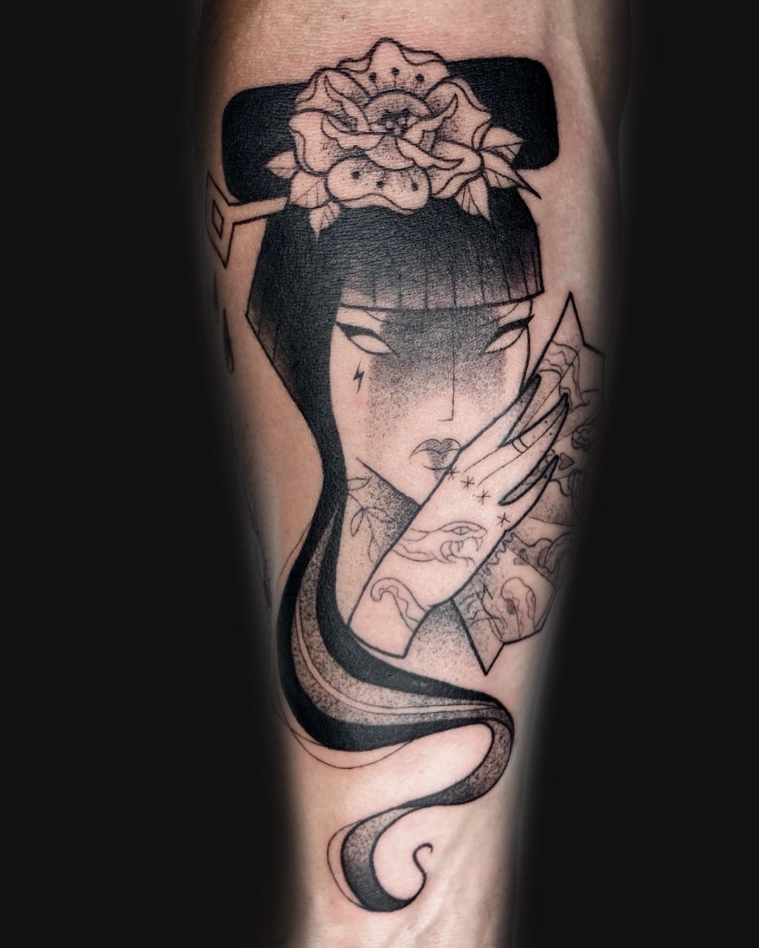 Su estilo personal surge de la mezcla entre la ilustración, la cultura oriental y el tatuaje tradicional, creando diseños que combinan elementos clásicos con degradados suaves, limpios y armónicos y líneas más contemporáneas. Además, destaca por su versatilidad y capacidad técnica, dominando múltiples estilos como old school, neotradicional, dotwork, ornamental, geométrico, fine line y otros enfoques que le permiten adaptarse a todo tipo de proyectos.